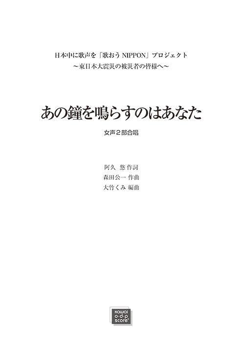 森田公一(大竹くみ):「あの鐘を鳴らすのはあなた」女声2部合唱