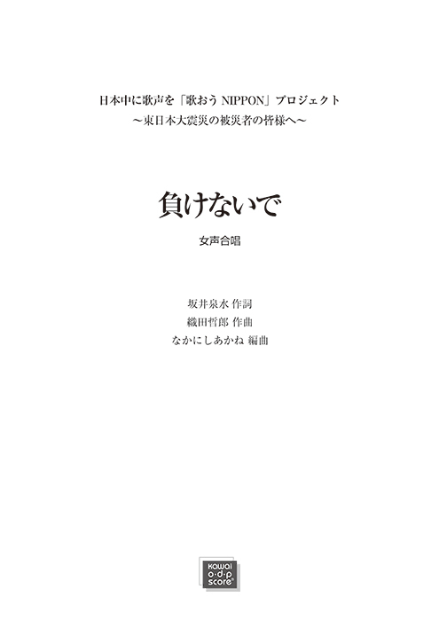 織田哲郎(なかにしあかね):「負けないで」女声3部合唱
